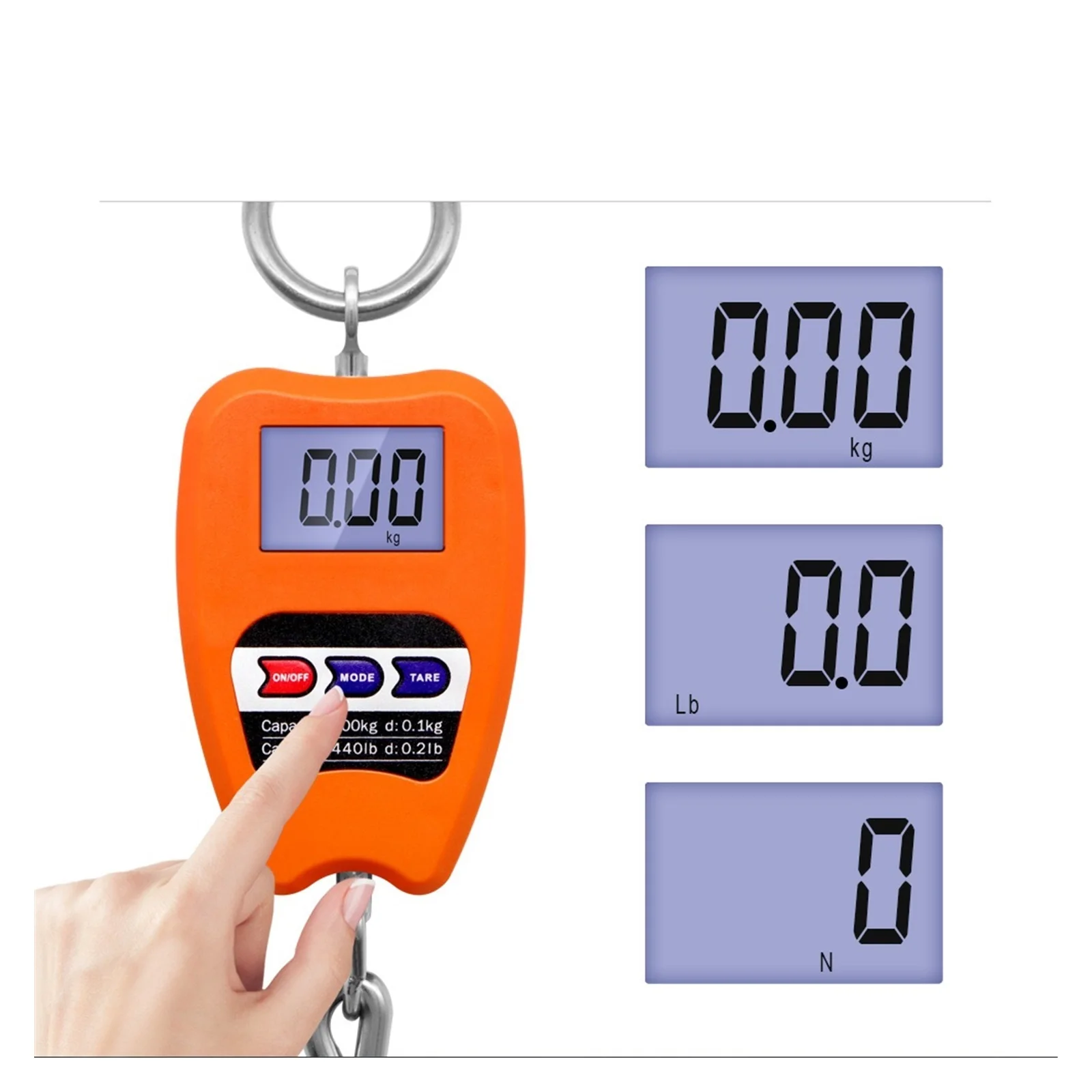 Built with a strong body and heavy-duty hanging hook, this scale is suitable for demanding environments such as workshops, farms, warehouses, and outdoor use. It handles loads of up to 200kg (441lb) with stability and confidence.