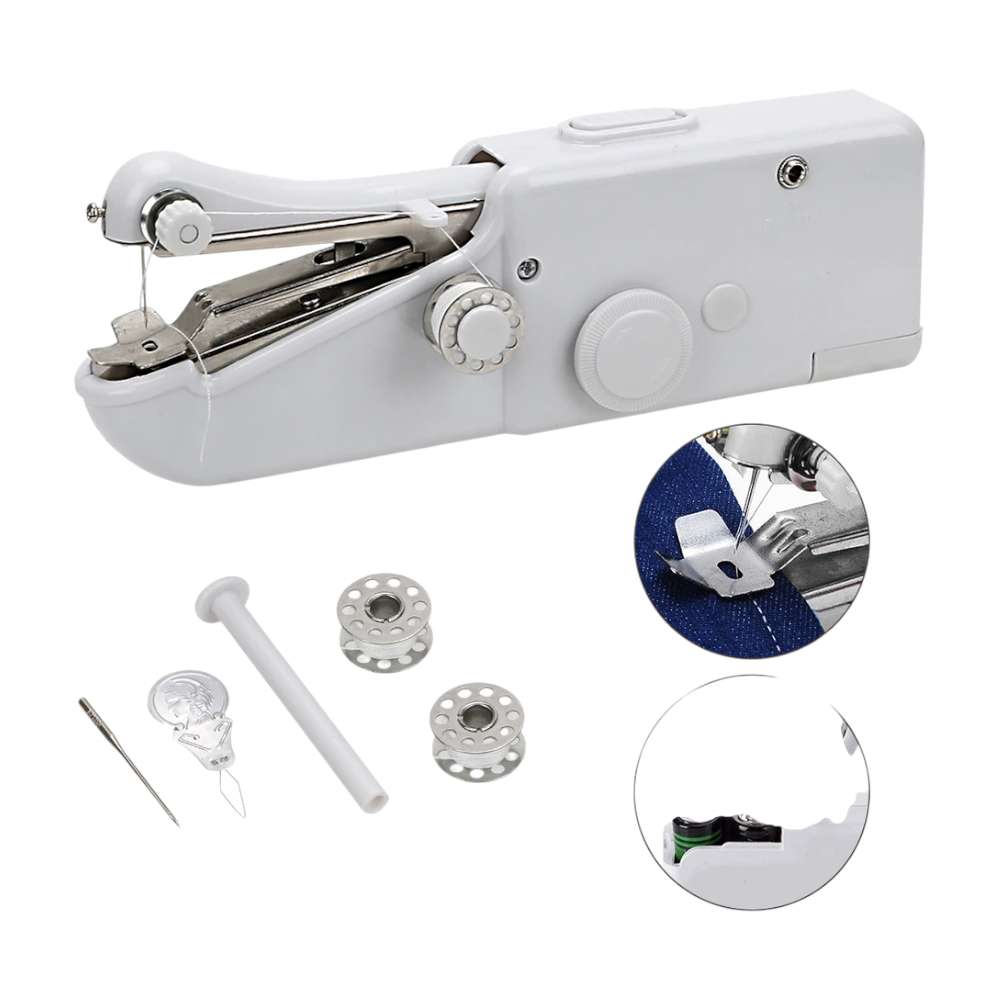 This handheld portable sewing machine is a practical solution for quick repairs and light sewing tasks at home or while traveling. It is ideal for fixing torn clothes, curtains, bedsheets, and other fabrics without the need for a full-sized sewing machine.